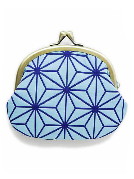 「ふくれ織」を使用した麻の葉柄のがま口です。