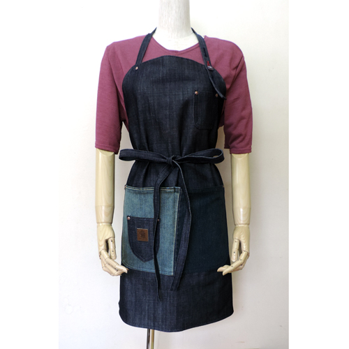 個性的なカラーポケットがオシャレなデニムエプロン♪